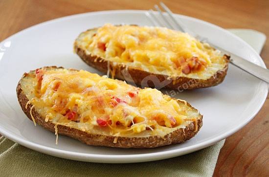 - تحشى البطاطس بالخليط، وتوضع في صينية مدهونة بزيت خفيف، وتغطى بورق القصدير “الفويل”، وتدخل الفرن لمدة 40 دقيقة، وحتى تنضج.