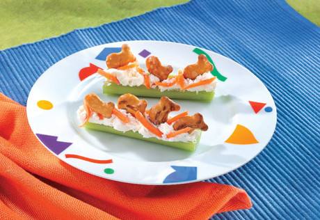 - قومي بقطع الكرفس الى نصفين ثم ضعي في كل نصف 1 ملعقة كبيرة من الجبن الكريمي.