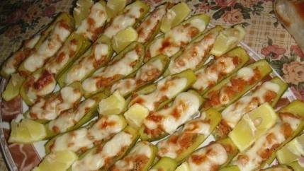 - إحشي أنصاف حبات الكوسا بخلطة اللحم أو الدجاج وضعيها في صينية فرن.