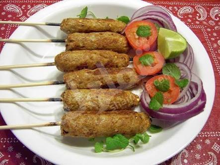 - نظفى الدجاج جيداً بالماء البارد و الملح الخشن والدقيق ثم يفرم إخلطى الدجاج بالبصل المفروم و الثوم المهروس و البهارات حسب الذوق و البقدونس والملح والفلفل والزنجبيل والكزبرة والكمون مع بعض جيداً لنحصل على خليط كباب الدجاج .
