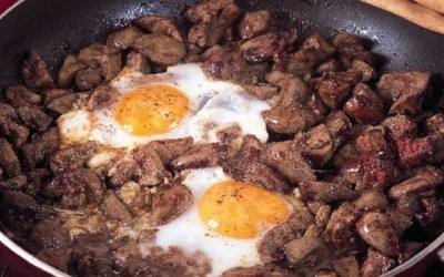 - ويقدم البيض مع كبدة الدجاج .