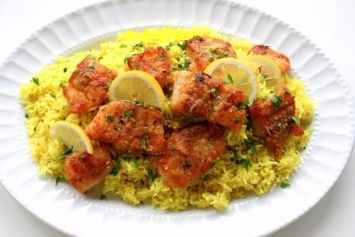 13. يغطى، ويترك حتى ينضج السمك والارز.
