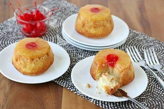 - فى مقلاة كرملىِ السكر، ثم ضعيه فى قاع القوالب ثم ضيفىِ فوقه حلقة من الأناناس، وضعىِ فى المنتصف كريزة، ثم ضيفىِ عليها خليط الكيك.
