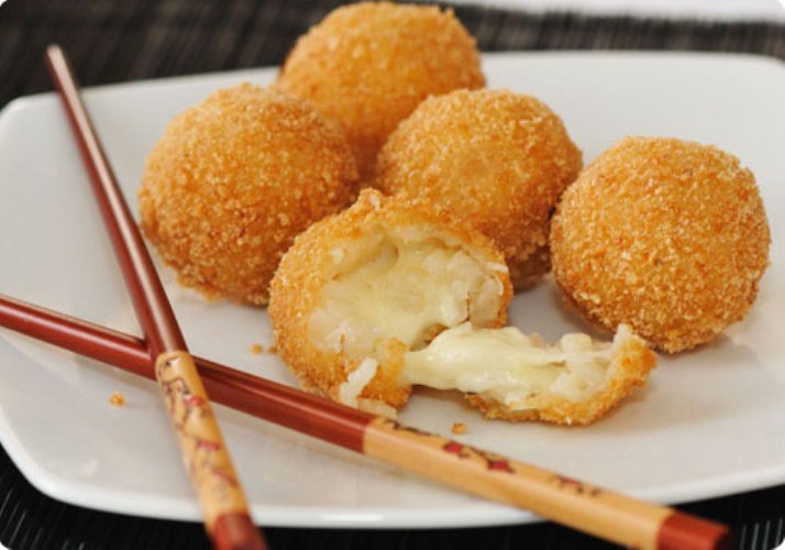 - – نقلي كرات البصل والجبنة الى ان تكتسب اللون الذهبي