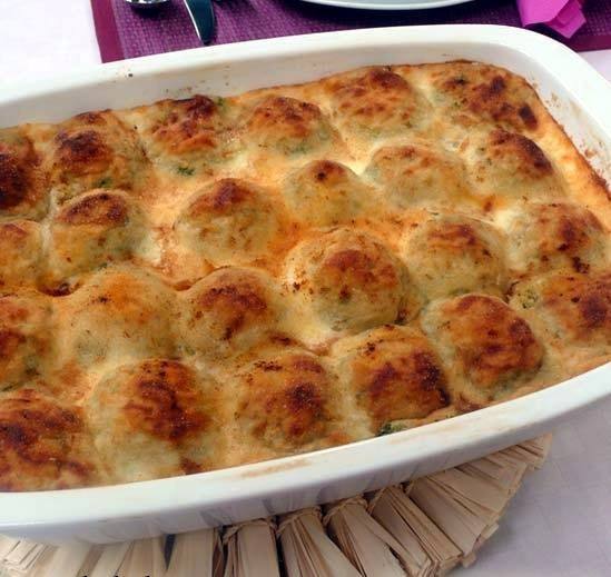 - وزعي البشاميل على كرات البطاطس لتتغطى تماما.