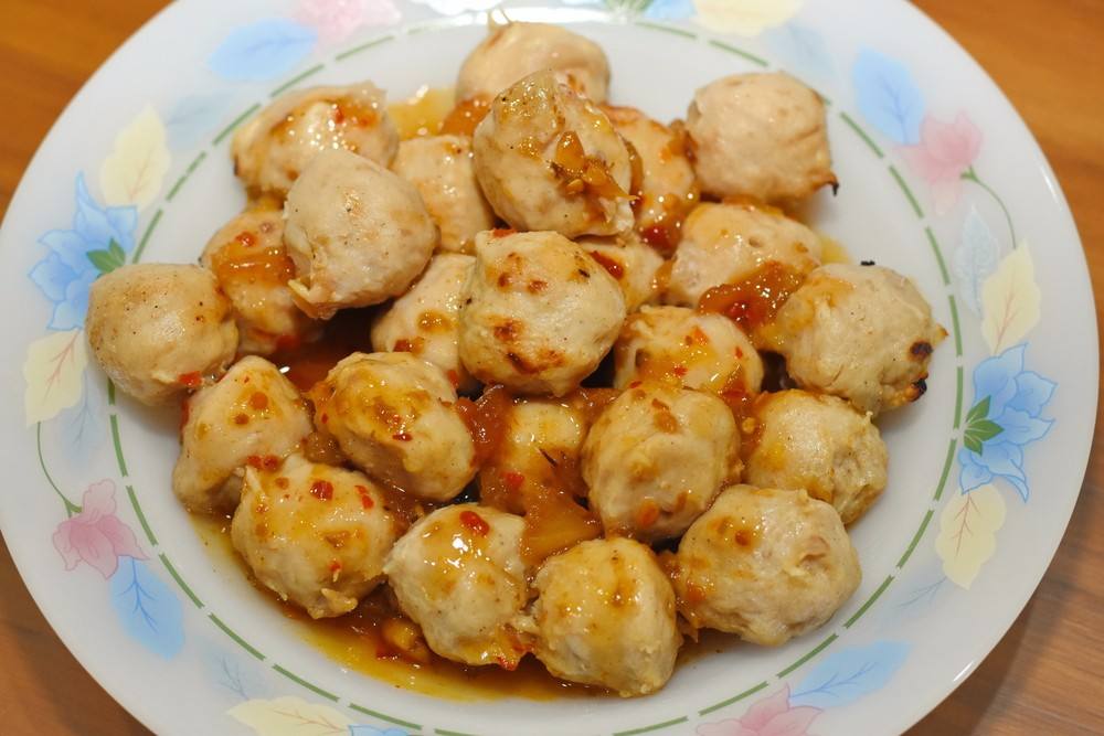 - توضع كرات الدجاج في الماء المغلي لمدة 10 دقائق، ثم تصفى، وتوضع جانبا.
