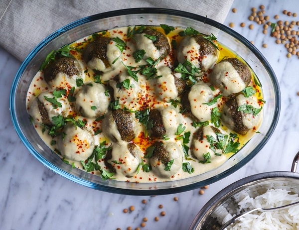 كرات الكفتة بالطحينة مناسبة للعزائم ولشهر رمضان المبارك وهي عبارة عن كرات لحم معجونة بالبصل والبقدونس والبهارات ومشوية بالفرن وفوقها صلصة اللبن والطحينة .