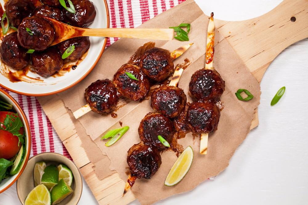 - ترص في الأسياخ الخشبية، وتوضع في الصينية.