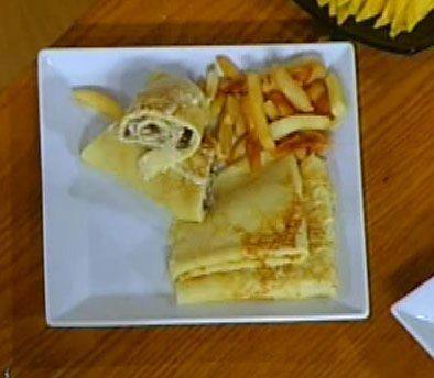 - لعمل الكريب يوضع الطحين في إناء ويخلط مع الحليب والكريمة اللباني والبيض .