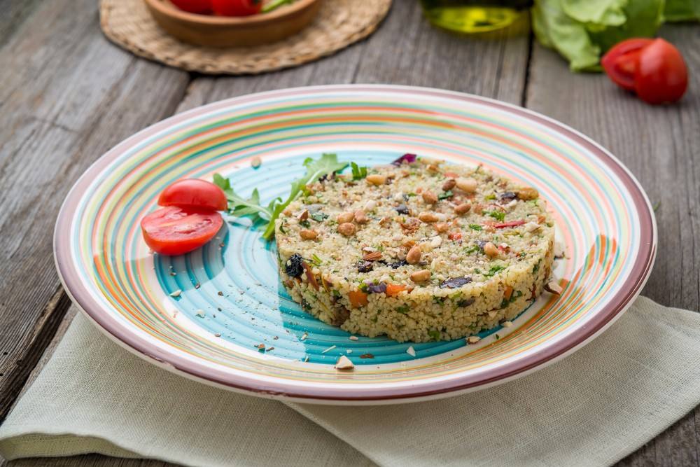 - يضاف إليه الكسكسي والزبيب، ويقلب جيدا.