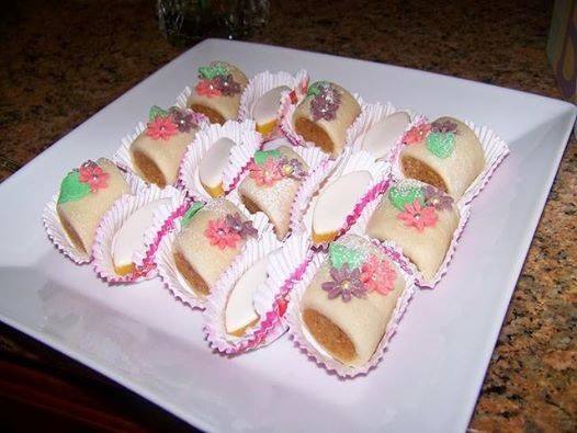 - بواسطة سكين حاد وعريض، تُقطع إسطوانات العجين المحشوة بزاوية ميل إلى قطع صغيرة على شكل مُعين بحجم 3 سم تقريباً.
