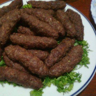 توضع اللحمة في أناء ، ويضاف أليها ملعقتين بقدونس ، ونصف بصلة مفرومة ، والشطة والملح والفلفل والكمون حسب الرغبة ، و2 ملعقة بقسمات ، وتعجن جيداً باليد .