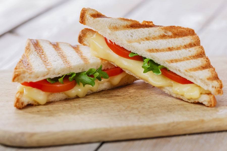 - توضع شريحة التوست، وتوضع فوقها شريحة الجبنة الشيدر.