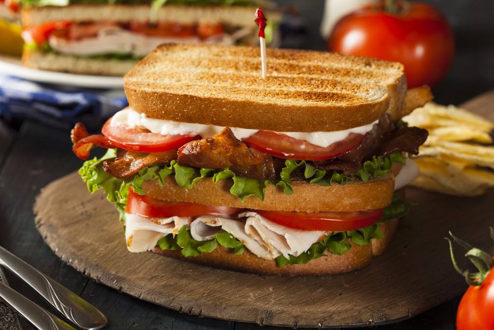 - توضع احد شرائح التوست المحمصة، ويوضع فوقها طبقة من شرائح الخس، ثم شريحة الرومي المدخن والطماطم.