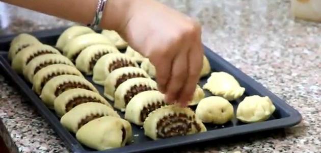 - لف العجينة على شكل أسطوانة، وتقطيعها حسب الرغبة.