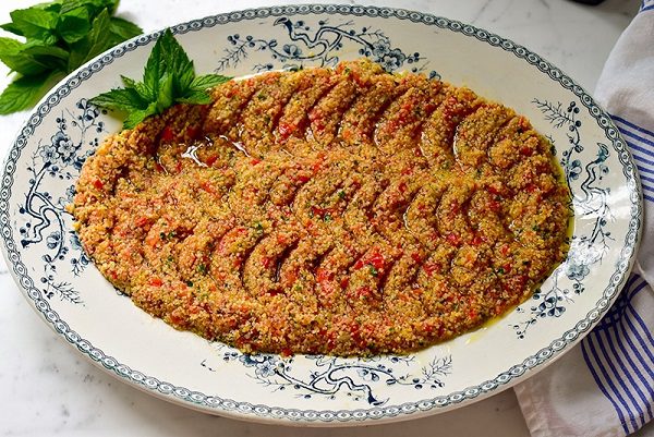 - نغسل البرغل الناعم جيداً ثم نصفيه تماماً من الماء ونضعه في وعاء .