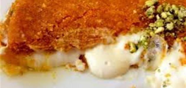 - ضعي صينيّة الكنافة في الفرن لمدة تتراوح بين نصف ساعة من الوقت إلى ساعة إلا ربع؛ أي إلى حين أخذها للون الذهبي، بعد ذلك أخرجي الكنافة من الفرن واقلبيها على الطبق الخاص بالتقديم.
