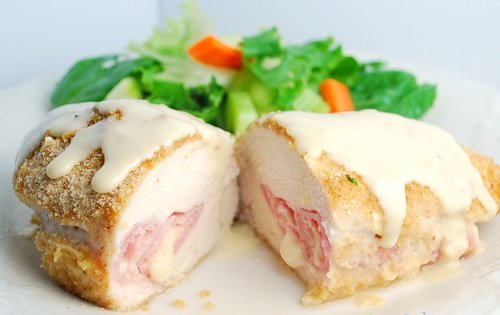 - – نصف الكوردون بلو في طبق ويصبح جاهز للتقديم