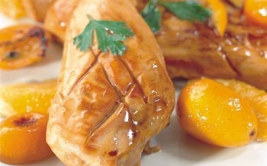 6. يسخن الزيت وتقلى فيه شرائح الدجاج جيداً حتى تصبح ذهبية اللون.