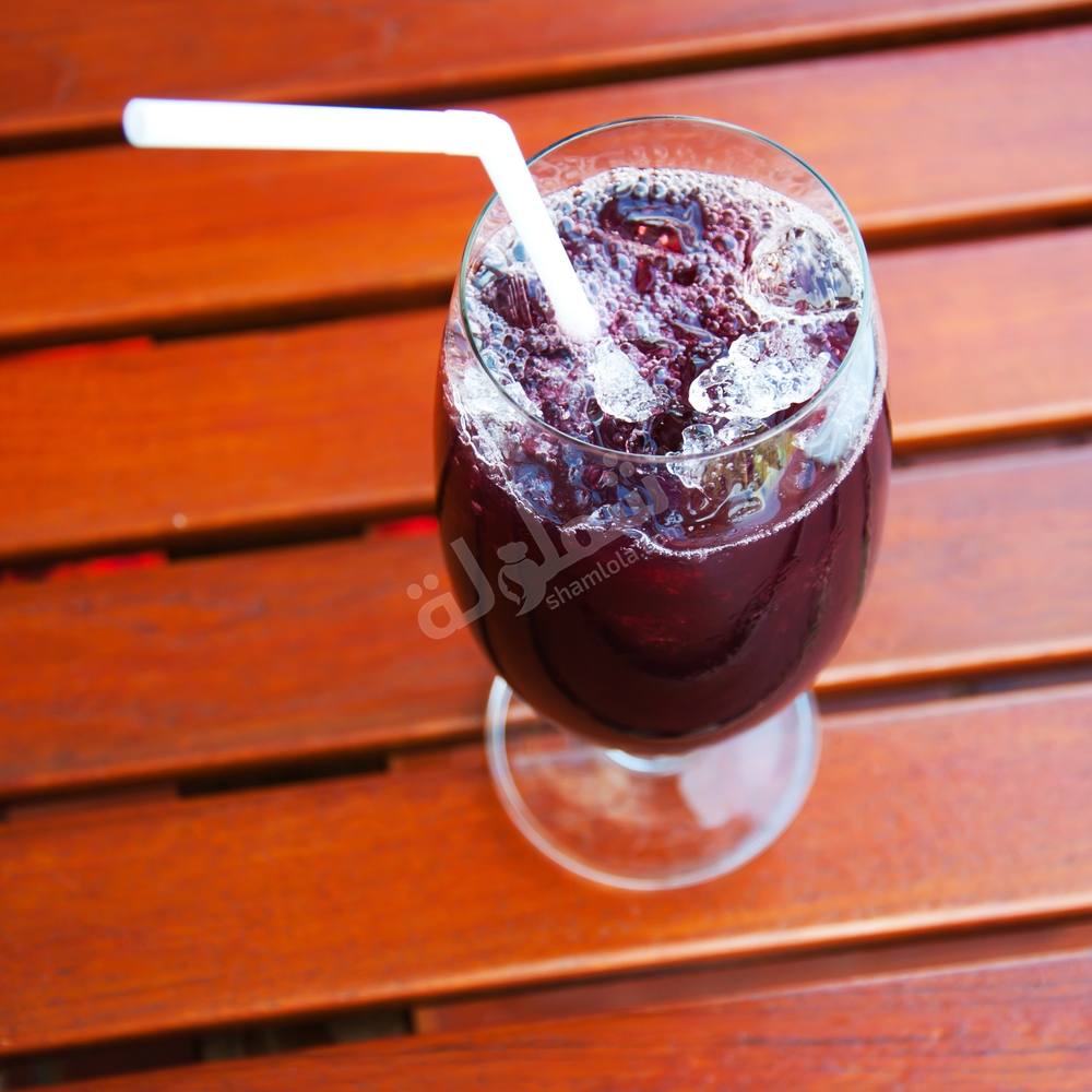 - فى الخلاط نضع رمان وعنب وسكر وماء ونخلطهم مع بعض ونصفى فى مصفاة .