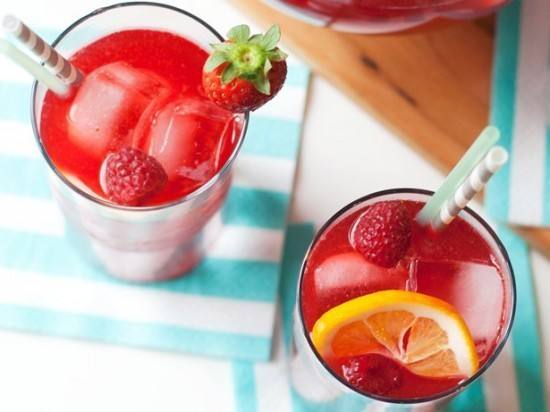 - يُصبّ في كأس التقديم، ويٌقدم بارداً، مع حبات الفراولة والتوت .