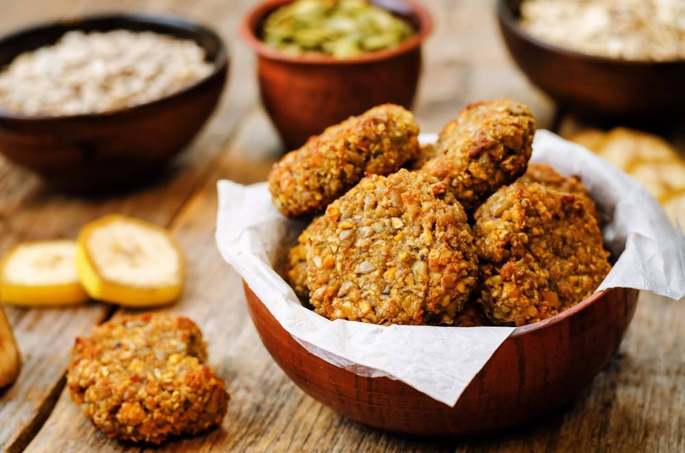 - في بولة كبيرة الحجم اخلطي الموز و الشوفان و زبدة الفول السوداني و الملح و القرفة جيدا.