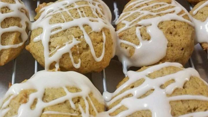 - ضعي تحت الشبكة ورق زبدة ثم قومي بتوزيع مزيج السكر البودرة و اللبن فوق قطع الكوكيز.