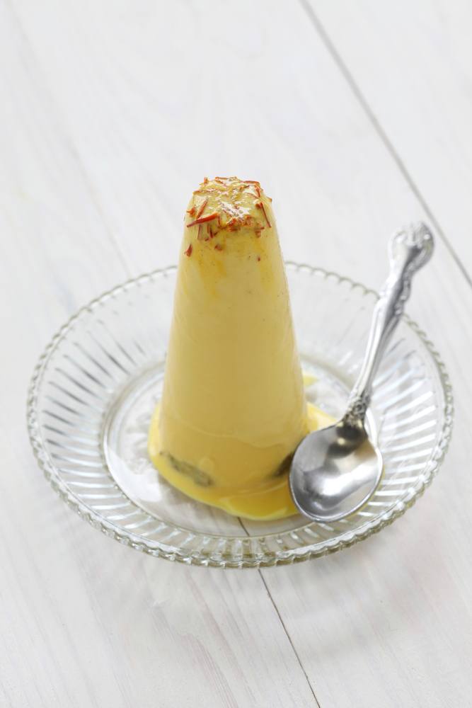 - تغطس قاعد كل قالب في الماء الساخن بسرعة ثم تقلب على طبق التقديم ويقدم مع المانجو.