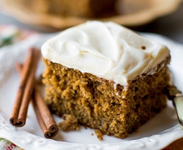كيكة البهارات ، كيكة مميزة غنية بالتوابل من الزنجبيل، القرفة، جوزة الطيب، القرنفل مع الدبس وصوص التفاح وفروستينغ من كريمة الجبنة والفانيلا