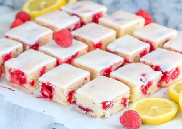 كيكة التوت الاحمر بالليمون ، كيك سهل جداً وشهي فقطع الكيك غنية بالمزيج المثالي من نكهة الليمون والتوت وسيحبها أطفالك بالتأكيد وهذا الكيك رائع في موسم العودة إلى المدرسة ولا بد من إضافته إلى وجبة أطفالك .