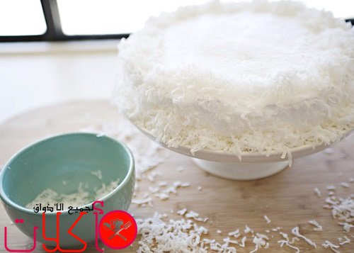 *يمكنك وضع جوز الهند المبروش على حواف الكيكة الخارجية( حول دائرة الكيكة)