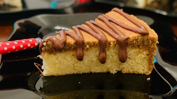7. نفرغ النوتيلا في كيس التشكيل ونزين وجه القالب بخطوط طولية وعرضية ونقدمها مع كوب شاي ساخن وصحة وهنا .