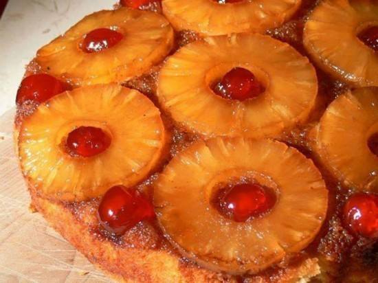 - إخبزي الكيك في الفرن لمدّة 45 دقيقة ثمّ أخرجيه واقلبيه ليصبح الأناناس على الوجه.
