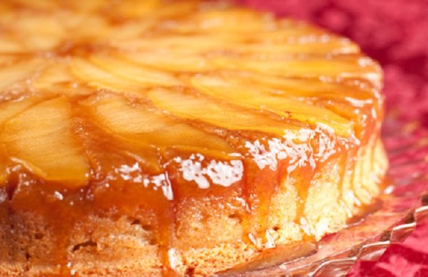 كيك التفاح المقلوب ، كيكة رائعة يتم ترتيب التفاح في اسفلها أثناء الخبز، ثم تبرد وتقلب عند التقديم على طبق، ليصبح التفاح يزين الوجه، وصفة شهية و مغذية .
