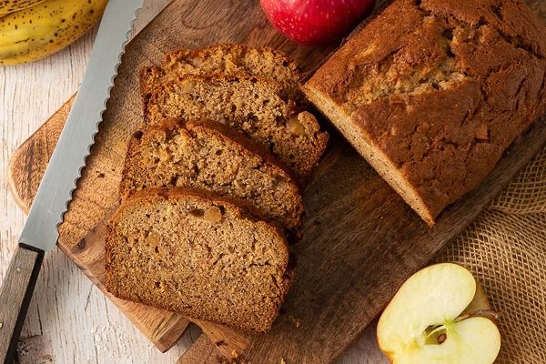 كيك التفاح والموز لذيذ جداً ويمكن تناوله مع الشاي أو القهوة في الصباح على الفطور مع العائلة أو الأصدقاء ومكوناته بسيطة ومتوفرة وطريقة تحضيره سهلة جداً .
