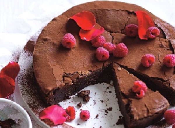 كيك بدون دقيق ، متماسك من الخارج وطري من الداخل مما يمنحه مذاقاً مميزاً، ويتم تقديمه مع كريمة كثيفة محلاة و بزين بالتوت البري و هو مناسب للاشخاص الذين يعانون من حساسية القمح .
