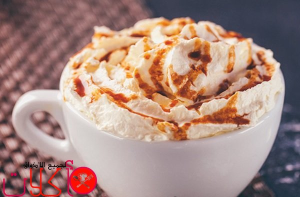 - نضع لاتيه الكراميل في فناجين التقديم ونضيف كريمة الخفق ونزين بصوص الكراميل وبذلك يصبح لاتيه الكراميل جاهزاً للتقديم .