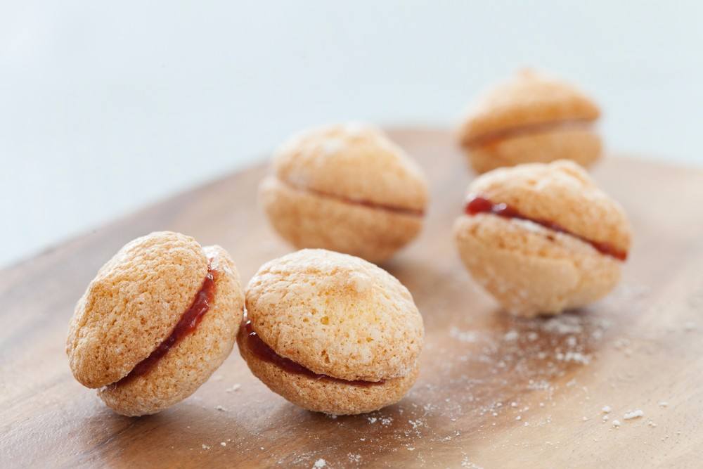 - يوضع مقدار نصف معلقة من المربى على الجزء المسطح، وتوضع فوقها واحدة أخرى، ويضغط عليه قليلاً.
