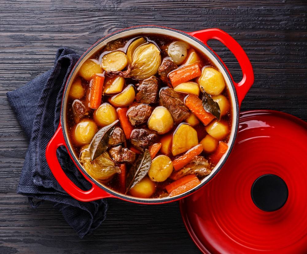 - يضاف البطاطس والجزر والبصل، وتقلب جيداً.