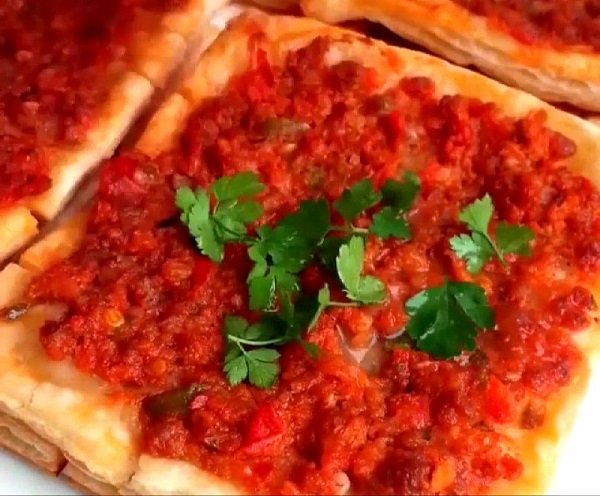 لحم بعجين بعجينة البف باستري هي طريقة سريعة لتحضير طبق لذيذ ومناسب لكل الاوقات وفيه نستخدم اللحم المفروم والطماطم والبصل والفلفل الاخضر وبعض التوابل،الطريقة سهلة جدا جربوها معنا.
