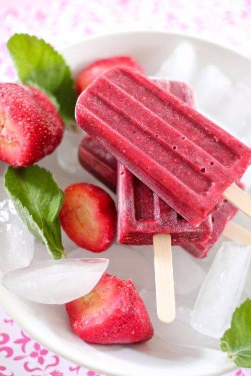 1. تقسيم الفراولة بين 6 قوالب آيس بوبس سعة القالب 1/2 كوب    .