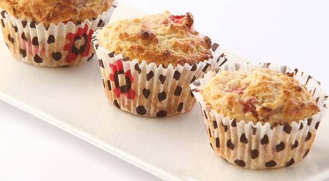 ٩. توزع قطع الفراولة على المافن وتقدم باردة.