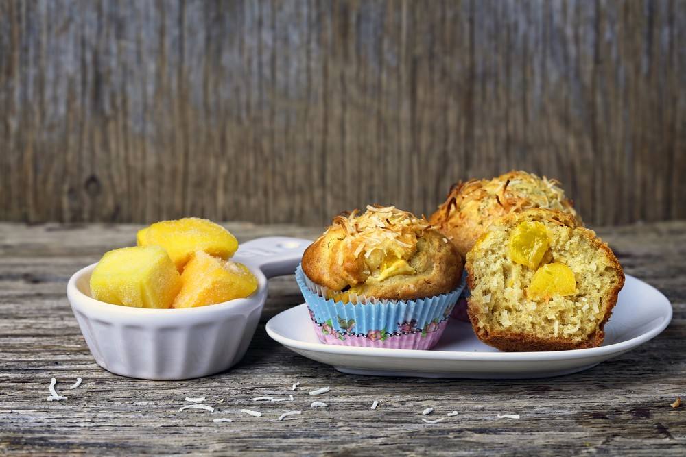 - املئي قوالب المافن بمزيج المانجو و المكسرات.