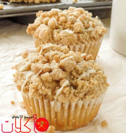 4- نوزع العجينة في اكواب الكب كيك ونضيف فتات العجين على وجه الكب كيك