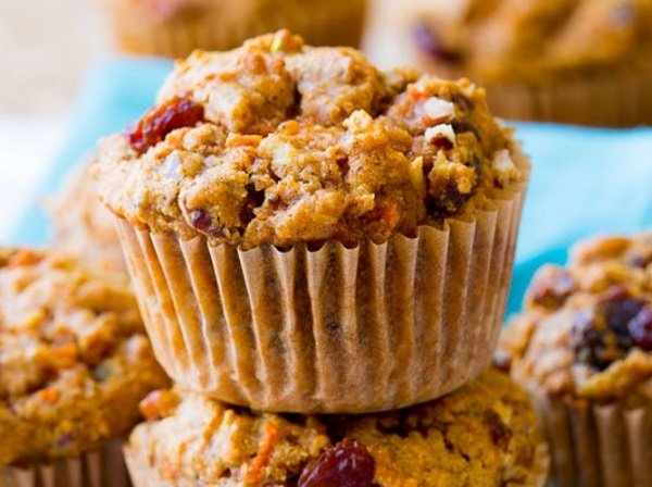 مافن كيك صحي ، حلويات مغذية غنية بالمكونات الغذائية الصحية ما يجعله وجبة ممتازة للإفطار تزود الجسم بالطاقة كما أنها جميلة المطهر ولذيذة الطعم مع تشكيلة واسعة من المواد كالزبيب، الجزر، التفاح، عصير البرتقال، الجوز، القرفة، الزنجبيل، والعسل.
