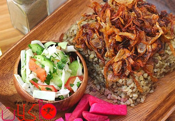 - نضيف الملح ثم البرغل المغسول والمصفى من الماء ونحركهم ونتركهم على نار هادئة حتى تنضج المكونات .