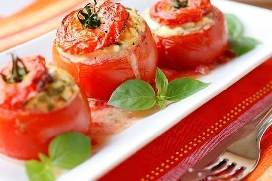 - يفرم لُب الطماطم مع معجون الطماطم والنعناع فى الخلاط الكهربائى ثم توزع هذه الصلصة فى الصينية حول حبات الطماطم المحشية.
