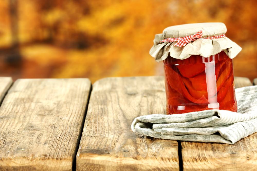 - سوف يطفو التفاح لذلك توضع عليه مصفى ويحكم إغلاق البرطمان بورق بلاستيك مطاطي.