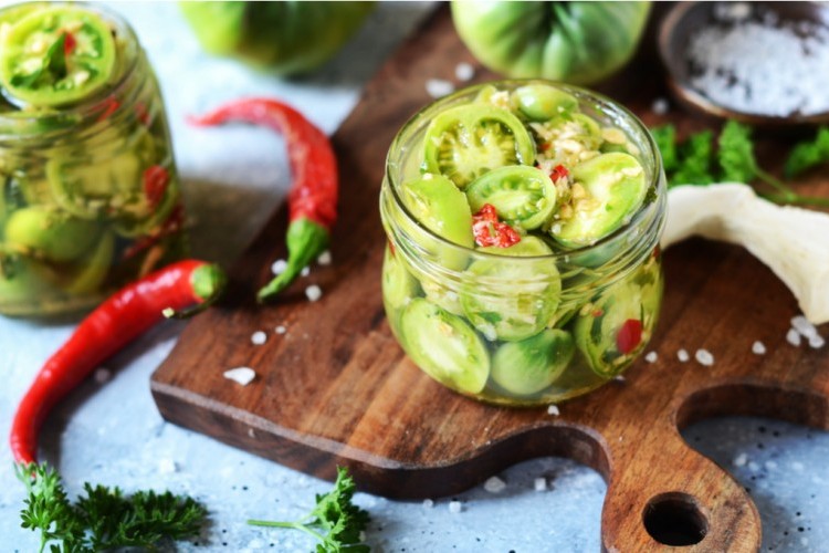 4. اتركي البرطمان لمدّة أسبوعين إلى أن يصبح لون الطماطم أخضر فاتح ثم قدميه بجانب الأطباق المفضلة.