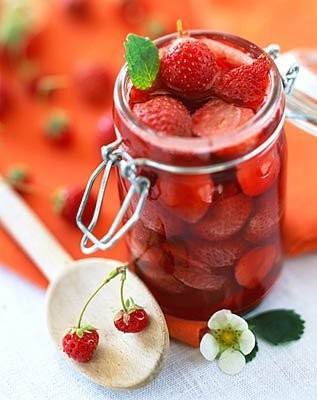 - تنظف الفراولة وترص في إناء زجاجي بحيث تكون طبقات من السكر والفراولة.